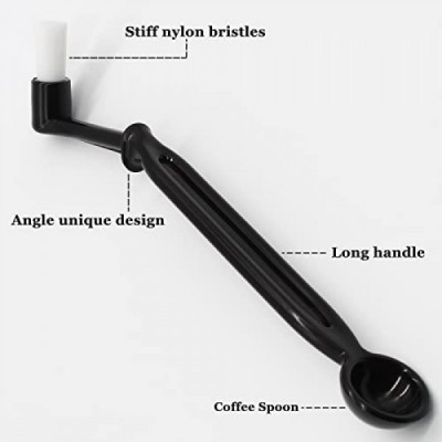 Kyuionty 커피 그라인더 청소 브러시, 에스프레소 머신 브러시 키트 나무 손잡이 및 천연 강모 콩 곡물 커피 도구용 스푼이 포함된 목재 더스팅 에스프레소 브러시