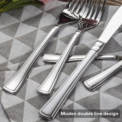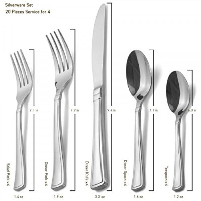 Alata Moss 20피스 은식기 세트 서비스 4개, 프리미엄 스테인레스 스틸 식기류, 거울 광택 수저 세트, 내구성 식기 세트, 포크 나이프 스푼 세트, 식기세척기 안전 포함