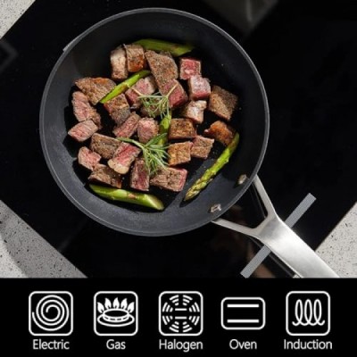 MsMk 뚜껑이 있는 10인치 프라이팬, 뚜껑이 있는 인덕션 프라이팬, 미국산 티타늄 및 다이아몬드 붙지 않는 코팅, 인덕션, 세라믹 및 가스 쿡탑용, 오븐 안전 10인치 프라