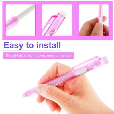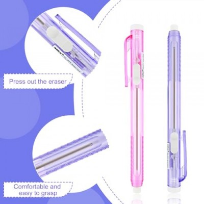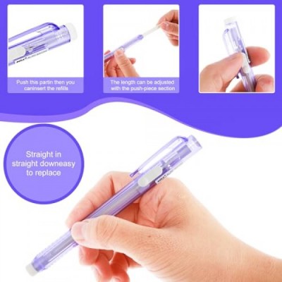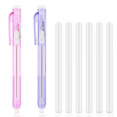 2Pcs Retractable Mechanical Eraser Pen, Mabor Pen-Style Erasers with 6Pcs Replacement Eraser Refills Mechanical Eraser for School Home Office Writing Drawing