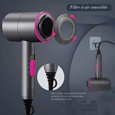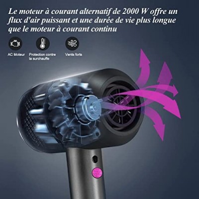 HappyGoo 헤어 드라이어 이온 헤어 드라이어 2000W AC 모터 전문가용 헤어 드라이어, 3가지 온도 설정, 냉풍 버튼, 디퓨저 1개, 집중 장치 2개, 다양한 헤어스타일에 적합 그