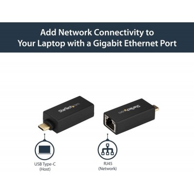 StarTech.com USB C to Gigabit Ethernet Adapter - 1Gbps NIC USB 3.0/USB 3.1 Type C Network Adapter - 1GbE USB-C to RJ45/LAN Port Thunderbolt 3 Compatible Windows MacBook Pro Chromebook (US1GC30DB) Black 12.7 mm x 20.3 mm