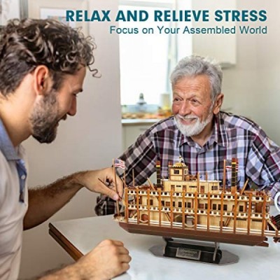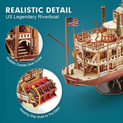 CubicFun 3D Vessel Puzzle Ship Models Toys Foam Puzzles Building Kits Gift for Adults and Kids, US Worldwide Trading Mississippi Steamboat 142 Pieces