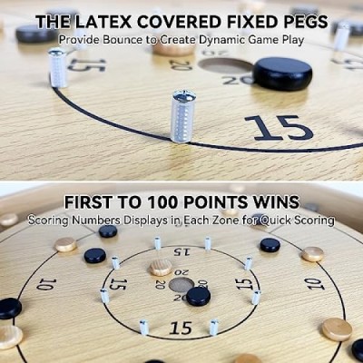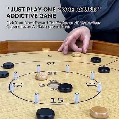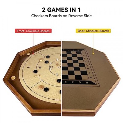 Tournament Crokinole Board Game 30 Inch, 2 in 1 Crokinole and Checkers with 26” Playing Surface, Metal Pegs, Wooden Octagon Canadian Tabletop Board Game Krokinole for Families and Friends