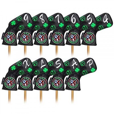 Big Teeth Golf Iron Covers Iron Head Covers, Lucky Clover Iron Covers Long Neck Golf Iron Head Covers, 11Pcs Golf Iron Covers Set Golf Club Covers Fit Taylormade