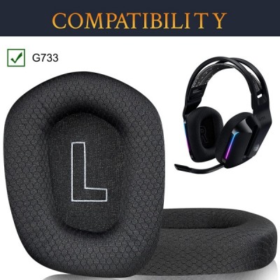 Logitech G733 Lightspeed 무선 게임용 헤드셋용 SOULWIT 전문 교체용 이어 패드, 내구성 있는 메쉬 패브릭이 있는 교체용 패드, 소음 차단을 위한 컴포트 폼-블랙