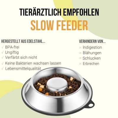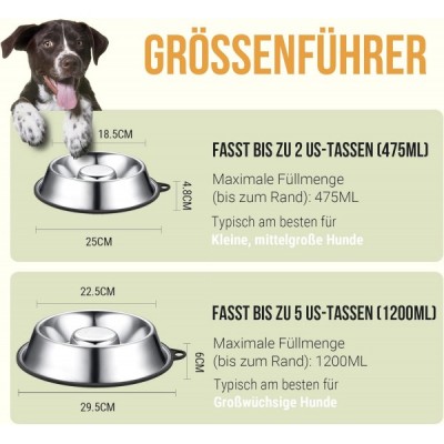 PEGGY11 Edelstahl Slow Feeder Hundenapf | Dauerhaft verklebter Rutschfester Silikonkautschuk Für kleine oder mittelgroße Hunde Edelstahl