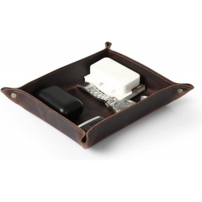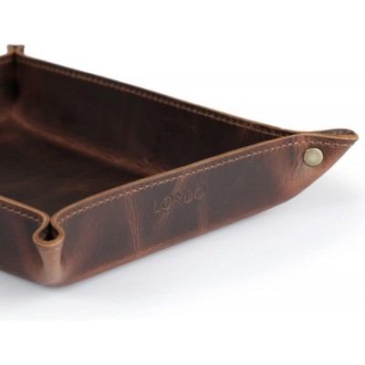 Londo Echtleder Leder Taschenleerer - Vide Poche - Ledertablett Organizer, Praktische Aufbewahrungsbox - für Geldbörsen, Uhren, Schlüssel, Münzen, Handys und Büroausstattung (Braun)
