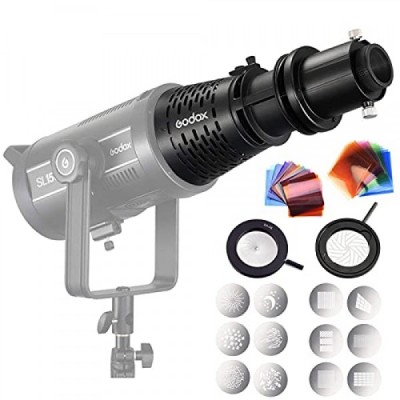 Godox SA-17 Bowens Mount Adapter with Godox SA-P Projection Attachment + SA-09-001/004 + SA-06 Iris + SA-10 GOBO Set Holder + SA-11C/SA-11T Color Gels Create Theatrical Effects for LED Video Light