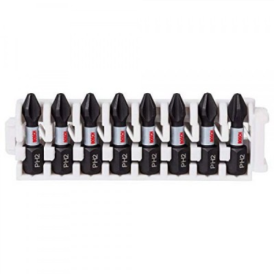 Bosch 2608522324 Screwdriver Bit Set, 8 Pieces, Hex Shaft 0.25 inches (6.35 mm), Groove Shank 0.4 inches (9 mm), PH2 x 25 mm)