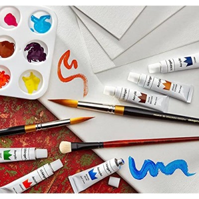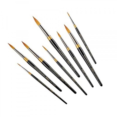 KINGART Premium Original Gold Series Handcrafted Golden Taklon Multimedia Artist Brushes, Gift Box, Set of 8, Black Gloss Handle, for Oil, Acrylic, Watercolor, and Gouache Paints