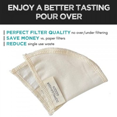 (2팩) Hario V60, Chemex, Kalita 및 Origami 스타일 필터용 재사용 가능한 유기농 면 푸어 오버 콘 필터 — 푸어오버 커피 필터 메이커 컵 세라믹, 유리, 플라스틱 드리퍼(크기 02