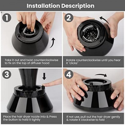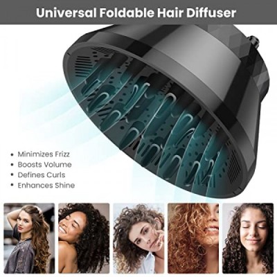 Segbeauty Universal Collapsible Hair Diffuser, Travel Foldable Adjustable Salon Fast Drying Blow Dryer Diffuser Attachment Portable for Thick Wavy Curly Hair Fit Most Blower 1.5-3.22 Nozzle Black