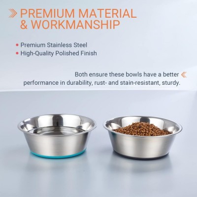 PEGGY11 스테인레스 스틸 딥 도그 그릇 2 팩 디자인, 미끄럼 방지 실리콘 금속 먹이 및 음료 그릇 대형, 중형 및 소형 개 식기 세척기 안전 개 그릇 3800ml 각 2 팩 블루 & 그