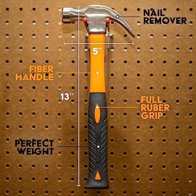 Heavy Duty Claw Hammer for Construction - 16 oz. Framing Hammer with Reinforced Build and Stainless Steel Head 13 Inch Hammer for Home Improvement by Mantium