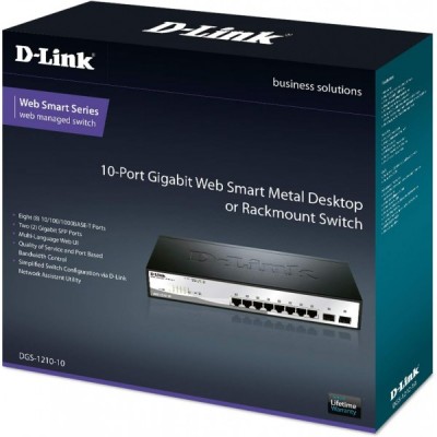 D-Link DGS-1210-10 10-Port Gigabit Smart Switch (8 x 10/100/1000 Mbit/s Base-T-Ports, 2 x 100/1000 Mbit/s SFP-Ports), schwarz / grau