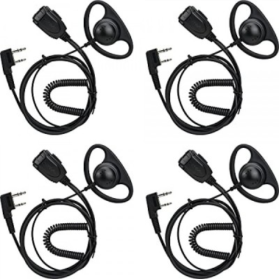 Retevis Clear D Shape Walkie Talkie Earpiece with Mic 2 Pin, Coil Tube, Compatible RT22 RT21 H-777 RT68 RT22S H-777S RT19 RT15 Walkie Talkies, Soft Earhook Two Way Radio Earpiece(4 Pack)