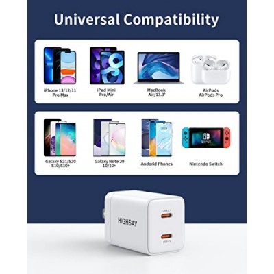 포함된 구성 요소: HIGHSAY 40W USB C 충전기(참고: 케이블은 포함되어 있지 않음)