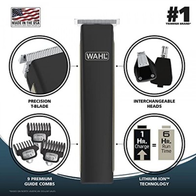 Wahl USA 남성용 충전식 리튬 이온 2.0 수염 트리머 - 그루밍, 디테일링 헤드, 라이트 터치 업, 귀 코 및 눈썹 모델용 정밀 T 블레이드가 있는 얼굴 털 트리머 모델 9886-300