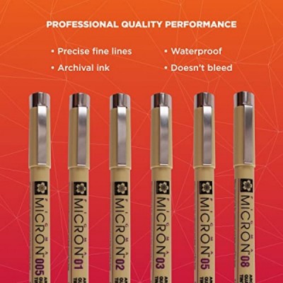 SAKURA Pigma Micron Fineliner Pens - Archival Black Ink Pens - Pens for Writing, Drawing, or Journaling - Assorted Point Sizes - 6 Pack