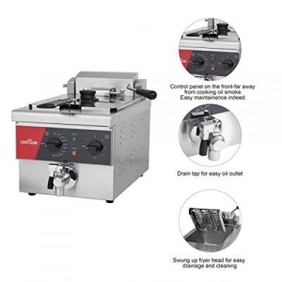 레스토랑용 배수구, 타이머, 바구니 및 뚜껑이 포함된 6L 전기 조리대 딥 프라이 초대형 120V,1800W 상업용 딥 프라이어