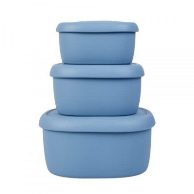 BLUE GINKGO 네스팅 실리콘 용기 - 하드쉘 실리콘 식품 저장 용기 3개 세트 | BPA 없음, 기밀, 식기세척기 및 냉동고 안전(6.7온스, 10온스, 20온스) - 블루