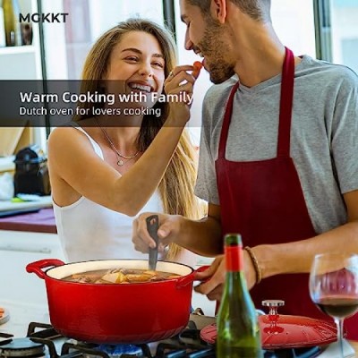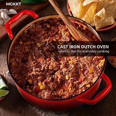 MGKKT Enameled Cast Iron Dutch Oven with Lid, Enamel Pot with Loop Handles, 6QT, Red