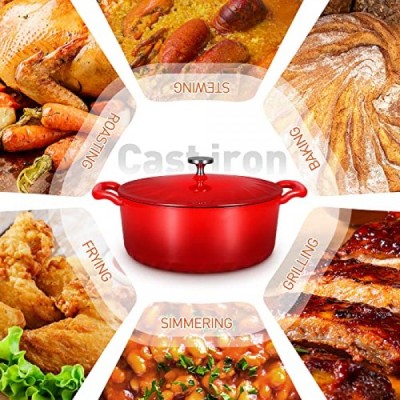 뚜껑이 있는 MGKKT 에나멜 주철 더치 오븐, 루프 손잡이가 있는 에나멜 냄비, 6QT, 빨간색