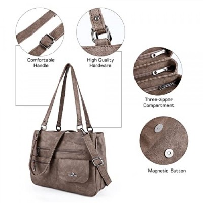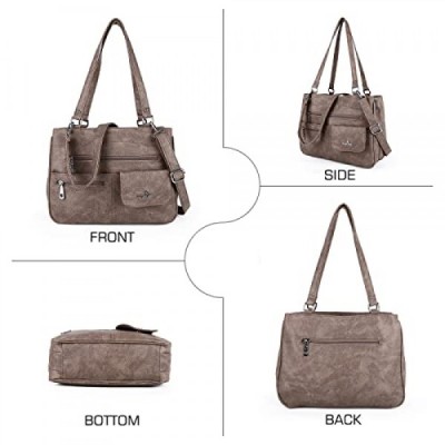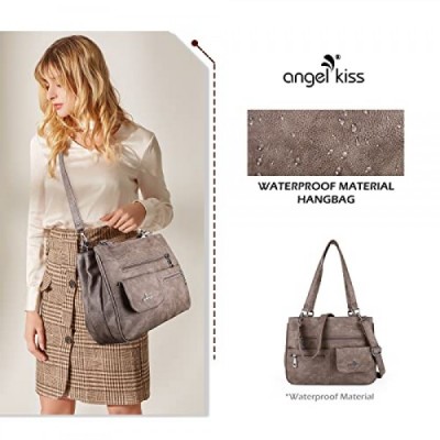 angel Kiss 여성용 가죽 핸드백 숄더백 핸드백 방수 캐리 백 다기능 핸드백 숄더백 대형 작업용 학교 구매자 여행, 회갈색, 패셔너블