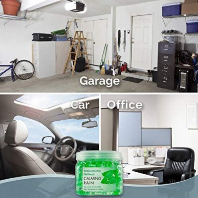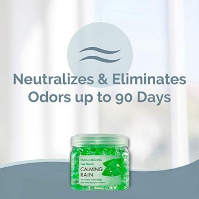 SMELLS BEGONE Odor Eliminator Gel Beads - Air Freshener - Eliminates Odor in Bathrooms, Cars, Boats, RVs and Pet Areas - Made with Essential Oils - Calming Rain Scent - 12 Ounce