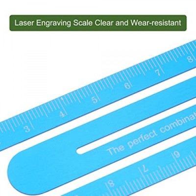 HARFINGTON 직선 눈금자 12cm 미터법 알루미늄 합금 눈금자 양쪽에 빈 종이 클립 디자인 책갈피 어린이를위한 측정 도구 학습 교실 사무실, 하늘색