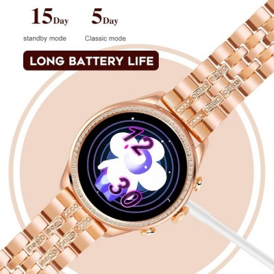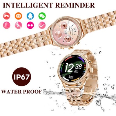 여성용 스마트 시계 블루투스 통화 심박수 수면 추적기 다이아몬드 피트니스 시계 스포츠 모드 여성용 Android 및 iOS Smartwatch 럭셔리 시계