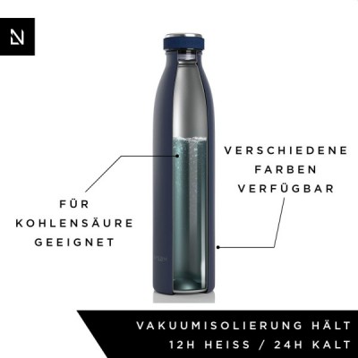 LARS NYSØM Edelstahl Trinkflasche 350ml, 500ml, 750ml, 1L, 1 5 liter | BPA-Frei Thermosflasche Kohlensäure geeignet | Auslaufsichere Wasserflasche für Sport, Outdoor, Schule (Navy, 750ml) 750ml Navy