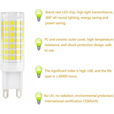 BANGSHUO Pack 10 G9 LED Light Bulb, 9W (85W Equivalent), Non-Dimmable, Cool White 6000K, 850 Lumen G9 AC220-240V, 360 Degree