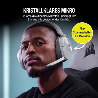 Corsair HS55 Wireless Gaming-Headset - Geringer Latenz 2,4-GHz-Wireless- oder Bluetooth, Dolby® Audio 7.1-Surround-Sound, Leichtgewicht, Omnidirektionales Mikrofon, Zugängliche Tasten - Weiß HS55 WIRELESS Weiß