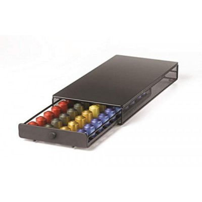 멋진 소형 네스프레소 오리지널 라인 캡슐 서랍 - 블랙, 40 캡슐 포드 팩 홀더, 비구동식 슬라이딩 서랍, 커피 포트 보관함 아래, 가정용 주방 카운터 정리함