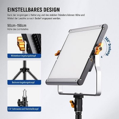 Neewer LED Video Lights Lighting Set: Dimmable Two-Colour LED Panel 3200-5600K CRI 96+ 2 m Light Stand and Softbox Diffuser for Photo Studio Portrait YouTube Video