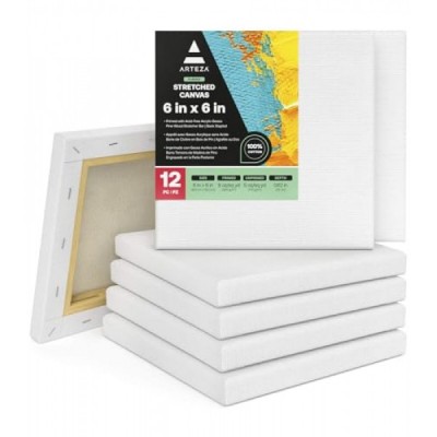 Arteza Paint Canvases for Painting, Pack of 12, 6 x 6 Inches, Square White Stretched Canvas Bulk, 100% Cotton, 8 oz Gesso-Primed, Art Supplies for Adults and Teens, Acrylic Pouring and Oil Painting