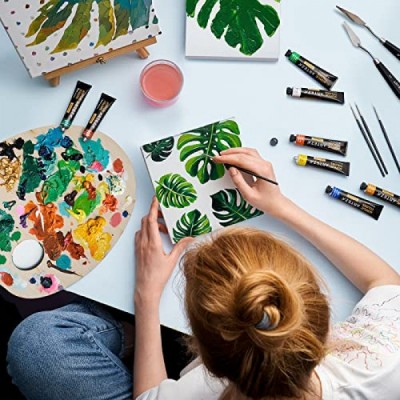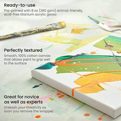 그림용 Arteza 페인트 캔버스, 12개 팩, 6 x 6인치, 정사각형 흰색 스트레치 캔버스 벌크, 100% 면, 8온스 게소 프라이밍, 성인 및 청소년을 위한 미술 용품, 아크릴 붓기 및