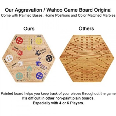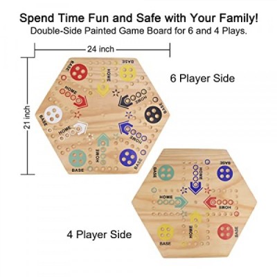 MUCITAGF Original Marble Board Game Wahoo Board Game Double Side Painted 24-Inch Wooden Fast Track Board Game for 6 and 4 Player with 6 Colors 36 Marbles, 8 Dice for Family Game Night, Party