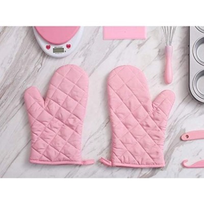Panegy 내열성 오븐 Mitts 두꺼운 내열성 오븐 Mitts 냄비 홀더 베이킹 장갑면 1 쌍 핑크 핑크 1 쌍