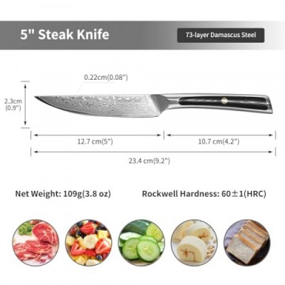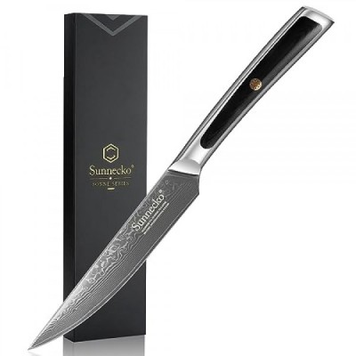 Sunnecko Kitchen Steak Knife 5 Inch Damascus Steak Knife VG-10 Japanese Steel Steak Knife Full Tang, Non Serrated Steak Knives High Carbon Stainless Steel