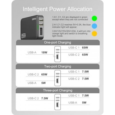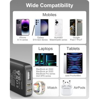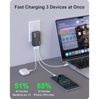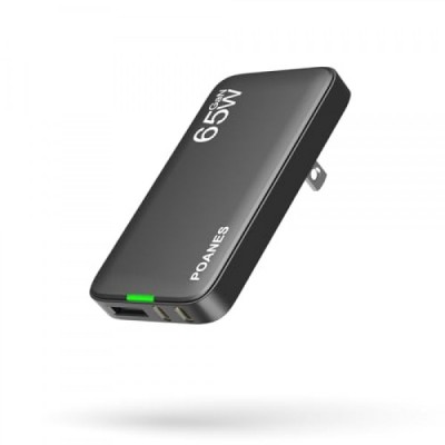 POANES 65W GaN USB C Charger, 3 Port Flat USB Wall Charger with USB C and USB A, Ultra-Slim GaN Charger PD3.0&PPS, Foldable Plug for Travel for MacBook, Laptops, Tablets, iPhone 15, Samsung