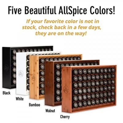 AllSpice 우드 스파이스 랙, 조리대 또는 벽걸이, 4온스 병 60개 포함 - 매트 화이트
