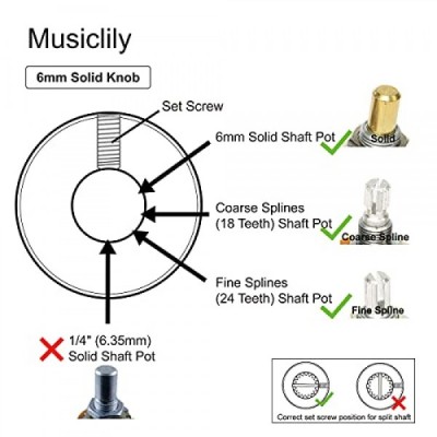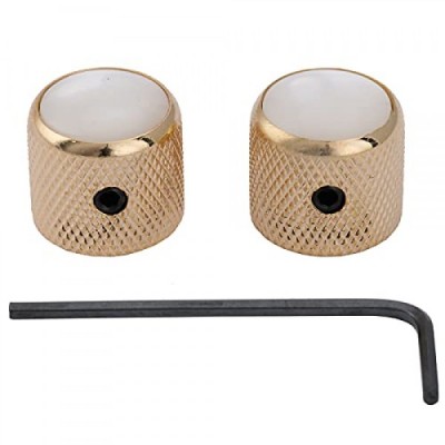 Musiclily Pro 6mm 스틸 화이트 펄 탑 텔레캐스터 돔 손잡이(텔레 일렉트릭 기타 또는 정밀 베이스용 고정 나사 포함), 골드(2개 세트)