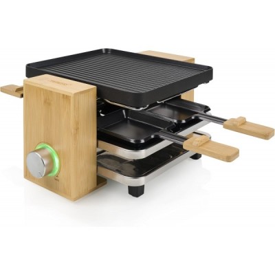 Princess SDA 162950 Raclette Pure 4 – Bambusausführung für bis zu Personen regelbares Thermostat 800 Watt Pfännchen und Spatel, 01.162950.01.001, Bambus / Schwarz