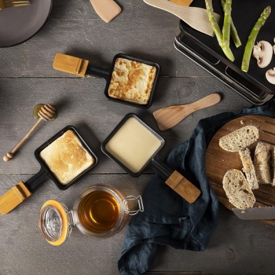 Princess SDA 162950 Raclette Pure 4 - 최대 인원 조절이 가능한 대나무 버전 800와트 팬 및 주걱, 01.162950.01.001, 대나무/블랙