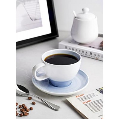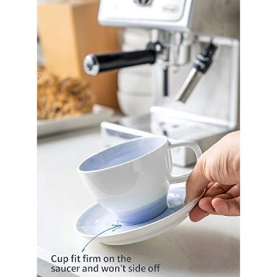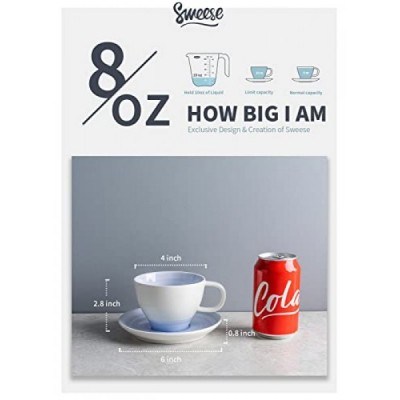 Sweese 도자기 티컵 및 접시 - 8온스 - 4개 세트, 라떼, 카푸치노, 카페 모카 및 차용 영국 커피 컵, 그라데이션 라일락
