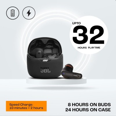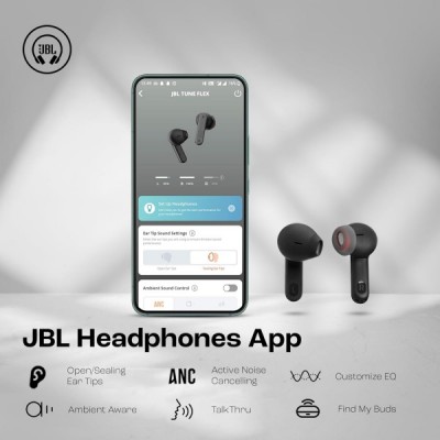 JBL Tune Flex TWS - 방수, 완전 무선, 검은색 노이즈 캔슬링 인이어 헤드폰 - 최대 32시간 음악 재생