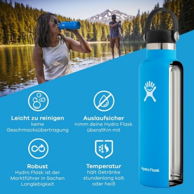 HYDRO FLASK - Trinkflasche 621ml (21oz) - Vakuumisolierte Wasserflasche aus Edelstahl - Sportflasche mit auslaufsicherem Flex Cap-Deckel - Thermoflasche Spülmaschinenfest - Standard-Öffnung - Olive Core Olive 621ml (21
